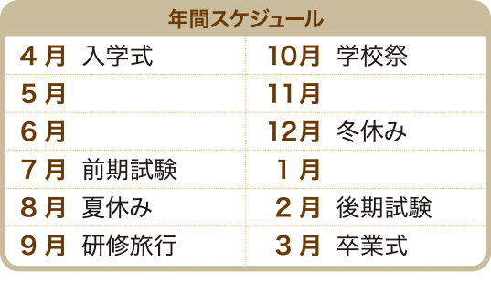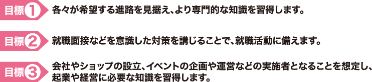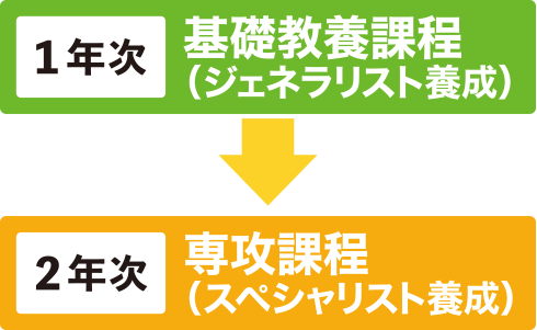 2年次には、生徒自身が目指す進路を強く意識し、現場での即戦力と成り得る人材を育成するためのカリキュラムを設定しています。個々が思い描く将来ビジョンの実現をサポートするため、目指す進路に最適な道筋をコーディネートします。